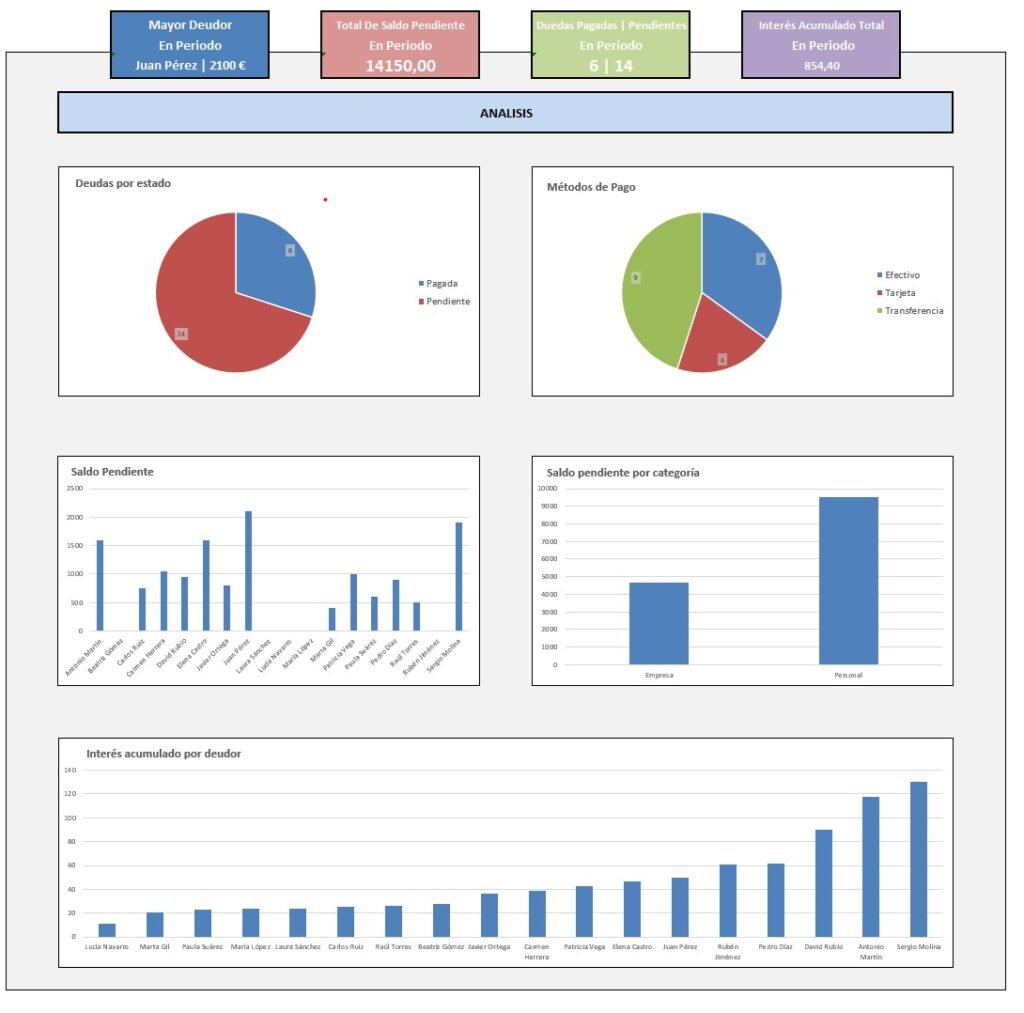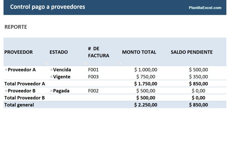 El campo más importante es el saldo pendiente, que permite identificar rápidamente obligaciones abiertas.